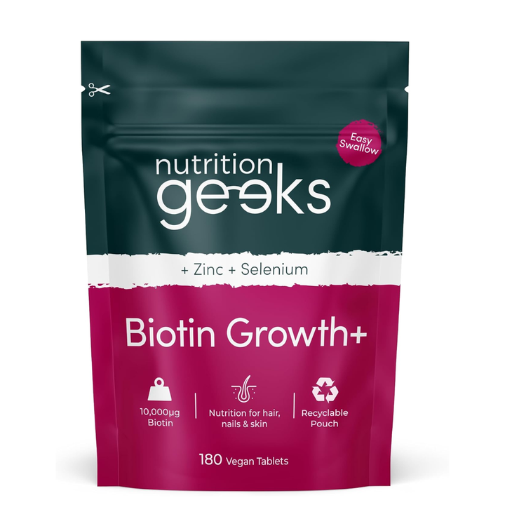 - Why Buy Our Biotin Hair Growth Vitamins? Each pouch contains 180 Biotin tablets enhanced with Zinc and Selenium. Biotin 10000mcg - (20,000% NRV per serving) and Zinc 10mg (100% NRV) supports hair growth as well as skin, nail and bone health. Selenium 55mcg (100% NRV) is an antioxidant that protects your hair skin and nails from damage. Zinc also contributes to normal functioning of fertility and reproduction. Premium quality hair growth tablets for women and men. Manufactured in UK.