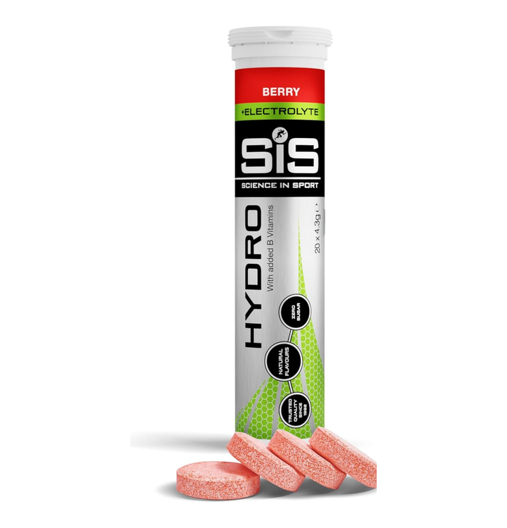 Science In Sport Hydro vegan hydration tablets, berry flavour plus electrolytes, contain just the right amount of scientifically researched clinical doses of all your body's essential electrolytes to ensure you can go further for longer by dramatically reducing fatigue from electrolyte imbalances. Hydro meets your sodium requirement at a specific concentration (30 mmol/Litre) that is scientifically proven to produce superior hydration compared to water alone. Suitable for vegans and vegetarians, these hydration tablets are high in B vitamins and gluten-free. They have natural flavours, zero sugar and are ideal for any athlete, gym-goer, or health-conscious person. Simply drop a tablet into water for effective hydration, with virtually no calories, before and during sports. Drop in 500ml water, let it dissolve, then drink.