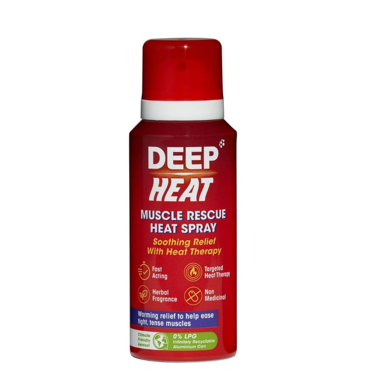 Deep Heat Muscle Rescue Heat Spray provides targeted, warming relief to ease and soothe tight, tense muscles. With a 360° application it's easy to spray directly onto those hard-to-reach areas such as the back. Can also be used before exercise. Deep Heat is the UK's No.1 topical heat brand (source: Circana All Outlets 52 w/e 9 Nov 24).